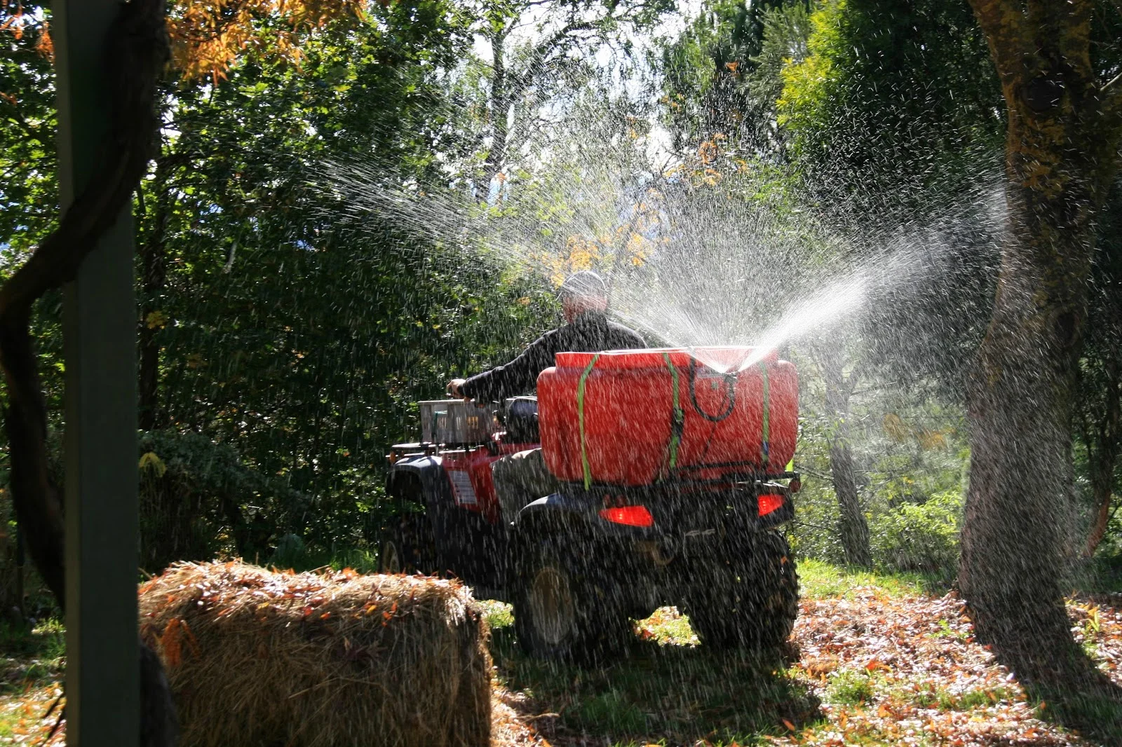Autumn is also the time for putting out the special biodynamic sprays that help the development of the soil and encourage better plant growth. We have our own stirring equipment now and have adapted the ATV so we can use it to spray the whole place, garden and vegetables included.